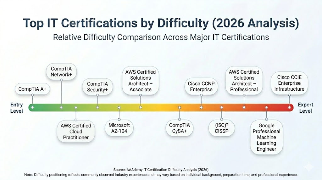 Source: AAAdemy IT Certification Difficulty Analysis (2026)